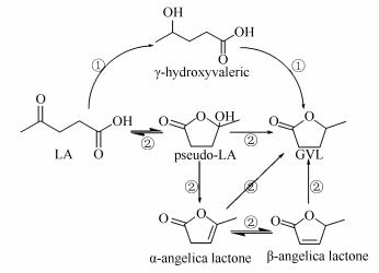 A substantial amount of research is currently being carried out worldwide to identify attractive chemical transformations for the conversion of biomass to bio-fuels and green value-added chemicals. The conversion of lignocellulosic biomass to levulinic acid (LA) through an acid-catalyzed hydrolysis process can promote wide use of renewable biomass for energy and chemical production[1].LA has been firmly identified as an intermediate molecule for synthesis of various single organic chemicals instead of producing compound mixtures. The combination of low cost with new catalytic technology has opened up new opportunities for LA as a green chemical feedstock. The hydrogenation of biomass-derived LA to γ-valerolactone (GVL) is a chemical bridge connecting biomass and petroleum processing[2, 3].GVL produced from abundant and inexpensive lignocellulosic biomass has drawn enormous attention because of its environmentally benign properties and versatile functions. It is also considered as a potential fuel additive for replacing ethanol in gasoline-ethanol blends, and as a reaction medium in biocatalysis. These applications thus open up a new area for the use of GVL in biotransformation[4, 5].