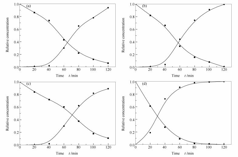 Nitrogen adsorption-desorption isotherms were measured with an autosorb iQ automated gas sorption analyzer. Prior to the measurements, all samples were degassed at 300 ℃ for a minimum of 3 h. The surface areas were calculated from the linear part of the Brunauer-Emmett-Teller (BET) plots. X-ray diffraction analysis of the samples was carried out using a Rigaku D/Max-RB diffractometer with Cu Kα monochromatized radiation source (λ=0.154178 nm), operated at 40 kV and 100 mA. The particle size and morphology were determined by transmission electron microscopy in a Philips CM200 FEG electron microscope, operating at 200 kV and equipped with a Gatan imaging filter, GIF100.
