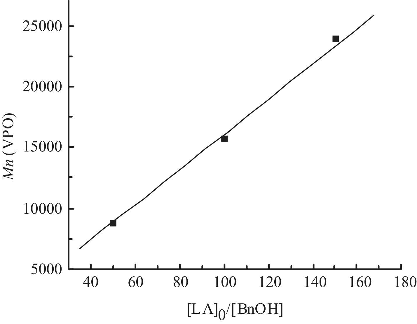表 1 Polymerization of L-lactide by copper complex (Cu-HMBED) in presence of benzyl alcohol.Table 1. Polymerization of L-lactide by copper complex (Cu-HMBED) in presence of benzyl alcohol.