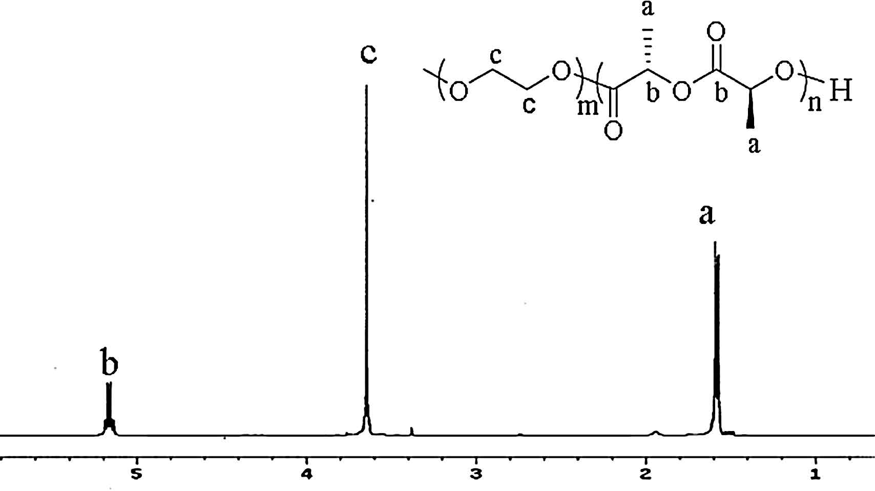 For block polymer PLA-b-MePEG, a mixture of Cu-HMBED (0.05 mmol), PEG (Mw = 2000, 0.800 g, 0.400 mmol) and L-lactide (1.728 g, 6.0 mmol) in toluene (20.0 mL) was stirred at room temperature for 4 h, during which an increase in viscosity was observed. After the reaction was quenched by the addition of a methanol solution (5.0 mL), and n-hexane (100.0 mL) was then added to the above mixture to give white solid. The white solid was dissolved in CH2Cl2 (10.0 mL) and then n-hexane (100 mL) was added to give white crystalline solid and was then dried under vacuum. Yield: 78.0% (1.719 g).