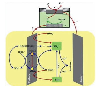 Figure 3 Possible mechanism of AO7 elimination in the MFC/HJ/PMS system. Copied with permission [58].Copyright 2017, Elsevier.
