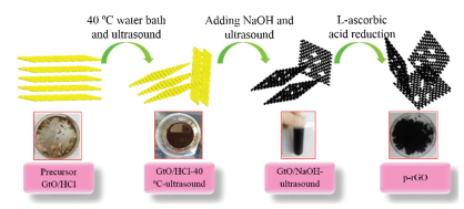In conclusion, we have developed a new type of method to prepare impurity-free PG that has an intrinsic porous structure through the synergistic effects of acid, alkali, and ultrasound treatment. After the HCl treatment, more oxygen-containing functional groups are planted on the surface of GO. Under alkaline conditions, the carboxyl and epoxide groups on GO undergo decarboxylation to form CO2 via ultrasound treatment, resulting in the formation of PG. This approach is simple, efficient, and controllable, thereby providing a scale-up fabrication of PG for various device applications.
