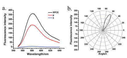 Surface plasmon coupled emission (SPCE), which was widely known as an interaction between the fluorophores in close vicinity of the metallic films and surface plasmons (SPs), has received extensive attention from researchers [1-5]. The fluorophores placed on the metal substrate within a few hundred nanometers could couple with SPs, and lead to a directional fluorescence emission with high p-polarization [6-10]. Because of the distance-sensitive coupling property of SPCE which could suppress the background signal and purify fluorescence signal, SPCE has been successfully implemented in DNA detection [11, 12] and immunoassays [13, 14]. With the increasing complexity and diversification of analytes, the improvement of the detection sensitivity becomes the first priority. Therefore, various approaches, such as development of instruments [15], employment of nanomaterials [16, 17] and assistance of an external field [18] have been introduced in SPCE-based systems to enhance the signal and increase detection sensitivity. Magnetic field, one of the most widely used external fields, has been employed in field-enhanced related systems such as surface plasmon resonance (SPR) and surface enhanced Raman scattering (SERS) to improve detection sensitivity [19-24]. Our group has investigated the pulsed magnetic field modulated SPCE system: The SPCE intensity is dramatically modulated by applying a pulsed magnetic field to the noble metal/ferromagnetic metal substrate. This modulation is due to the change of the SPs properties by the external magnetic field and the high magneto-optical (MO) activity of the metal substrate [18].