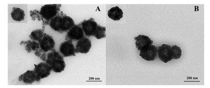 XRD patterns of the as-synthesis Fe3O4 and Fe3O4@Au-GSH were determined from 20° to 80° (2θ) and illustrated in Fig. S2 (Supporting information). In the case of Fe3O4 NPs, 6 diffraction peaks at 2θ = 30.5°, 35.6°, 43.3°, 53.7°, 57.3° and 63.1° could be observed in Fig. 2A, which were represented to (220), (311), (400), (422), (511) and (440) planes of Fe3O4, respectively (Fe3O4, JCPDS No. 82-1533) [39]. While for the Fe3O4@Au-GSH, except the characteristic peaks of Fe3O4, 4 additional peaks at 38.5°, 44.6°, 64.7°, and 77.8° corresponding to (111), (200), (220), and (311) planes of Au NPs also appeared (JCPDS No. 04-0784) [40]. It indicated that Au NPs do exist in the Fe3O4@Au-GSH nanocomposites and the crystalline structures of Fe3O4 were not destroyed by the subsequent synthesis process.