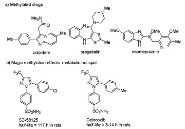 Methylation involved in many fundamental biological process-es, such as DNA replication, transcription, and epigenetics [1]. Also, the methyl group is one of the most prevalent functionalities in biologically active molecules (Fig. 1a). This simplest alkyl fragment can modulate both the biological and physical properties of a molecule, such as solubility, selectivity and metabolic half-life [2]. As was the case with anti-inflammatory drug celecoxib, a methyl group was introduced to decrease the half-life, (Fig. 1b) [3]. In light of these merits, catalytic methods to attach methyl group are particularly important to develop.
