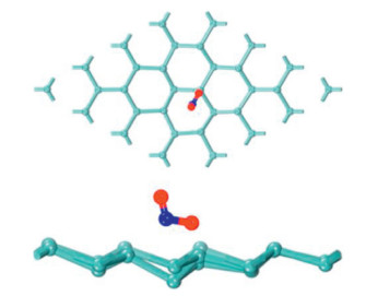 Figure 1 Top and side view of the lowest energy structure of NO2 adsorbed on stanene. Reproduced with permission [75]. Copyright 2016, The Journal of Physical Chemistry C.