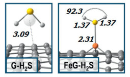 Figure 3 The adsorption of H2S onto pristine graphene (G) and Fe-doped graphene (FeG). Reproduced with permission [99]. Copyright 2018, Applied Surface Science.