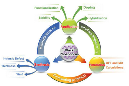 In summary, black phosphorus is unique in inorganic nonmetallic materials. Its tunable band gaps, outstanding charge carrier mobility as well as excellent electronic and optical properties lead to its marvelous prospects in the field of photocatalysis. Nevertheless, there are still three aspects to be further studied in the future (Fig. 1). The first area worth studying is the synthesis of black phosphorene, surface favorable stability, electronic structure and carrier transfer behavior. However, the poor stability of black phosphorene makes it difficult for largescale applications. The second challenge is the surface functionalization design, atom doping and 2D/2D heterojunction construction of black phosphorene. Last but not least, the combination of theoretical computation and experimental results will help to better uncover the synthesis process of black phosphorene, which will help to investigate the electronic structure, chemical reaction process, thus raising the ideological to a higher level.