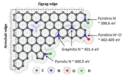 Figure 14 Scheme illustration of nitrogen species in nitrogen-containing graphitic carbons. The commonly doped nitrogen species in graphitic carbons with the corresponding reported XPS binding energies. Reproduced with permission [98]. Copyright 2017, American Association for the Advancement of Science.