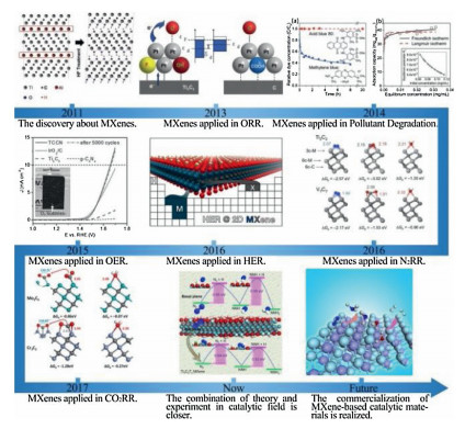 Figure 19 The development and future prospect of MXene in catalysis. Reproduced with permission [132], Copyright 2011, Wiley-Blackwell. Reproduced with permission [136, 147, 148], Copyright 2013, 2016, Royal Society of Chemistry. Reproduced with permission [149], Copyright 2016, John Wiley and Sons Ltd. Reproduced with permission [137, 150], Copyright 2016, 2017, American Chemical Society. Reproduced permission [139], Copyright 2019, Cell Press.