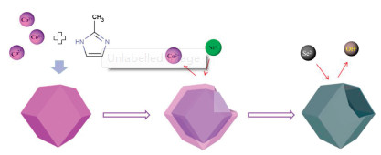 On the way to searching adequate supercapacitor electrode materials with remarkable electrochemistry properties, extensive research efforts are underway, mainly containing optimizing the conductivities [14, 15], constructing microstructures [1, 16-18] and exchanging/storing more than one electron at each faradic redox reaction center [19, 20], etc. Rencently, ternary transition metal chalcogenides, such as NiCo2S4 [21], NiFeS2 [22], CoMoS4 [23] and NiMoS4 [24] have received extensive research interest owing to higher electrochemical activity, shorter electron/ion transport lengths and richer redox reactions. However, low conductivity and poor stability place restriction on their electrochemical performance further improvement. Compared with sulfides, selenides hold higher conductivity and electrochemical activity, because of their faster reaction kinetics (1×10 -5 S/m) and weaker electronegativity (2.4) [25, 26], which signifies that transition metal selenides will be the satisfactory candidates of electrode material for supercapacitor. Furthermore, the reasonable design of micronano structure is also an effective strategy to ensure the excellent electrochemical performance of electrode materials. Hollow nanomaterials with interior cavities and functional shells boundaries exhibit vast prospects in the application of supercapacitor electrode materials by virtue of their remarkable merits such as shortened charge transport paths, low density, high surface to volume ratio, and kinetically favorable open structure [17, 25, 27]. MOFs are an organic-inorganic hybrid material with periodic network structure, which are composed of organic ligands and metal ions/clusters by self-assembly of coordination bonds [28]. They have well-defined pore size, controllable shape and high specific surface area, and are identified as an ideal sacrificial template to fabricate hollow transition metal compounds in recent years [28, 29]. Many studies have been reported on the use of MOFs derived hollow nanostructures for supercapacitor electrodes. For example, Wang et al. [30] employed ZIF-67 MOFs as a template to synthesize amorphous CoNi2S4 nanocages by hydrothermal and sacrifice template method, which displayed the high specific capacitance of 1890 F/g at 4 A/g, and excellent cycle stability (the capacitance retention of 71% after 5000 cycling charge-discharge measurements at 10A/g). Yang et al. [31] using Ni/Co-based MOFs as template by hydrothermal method, derived the core-shells NiCo2O4/NiO structure on Ni foam, which delivered specific capacitance of 726 F/g at 1 A/g with and excellent rate capability (the capacitance retention of 84% at 20 A/g). However, at present, the design and fabrication of MOFs-derived, the transition metal selenides for supercapacitor electrodes have rarely been reported.