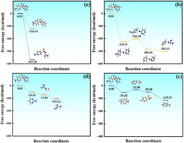 Figure 6  Energy barrier diagram of SDZ degradation by DFT: (a) Pathway Ⅰ and Ⅴ, (b) Pathway Ⅱ, (c) Pathway Ⅲ, (d) Pathway Ⅳ.