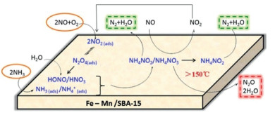 Figure 10.  The low temperature NH3-SCR reaction mechanism over Fe-Mn/SBA-15 catalysts for NOx reduction. Reproduced with permission [96]. Copyright 2018, American Chemical Society.