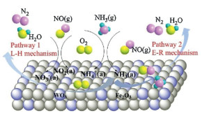 Figure 4.  The possible NH3-SCR reaction mechanism over the WO3-FeOx catalyst for NOx reduction. Reproduced with permission [40]. Copyright 2020, Elsevier.