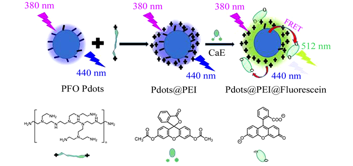 建立了以PFO Pdots@PEI为给体,FDA的水解产物荧光素为受体共振能量转移体系,利用CaE对FDA的催化水解作用,构建了一种检测CaE的比率荧光新方法,具有操作简单、选择性好、检出限低等特点。
