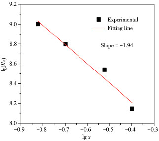 To investigate the luminescence concentration quenching, the critical distance (Rc) between two Tb3+ ions in CGTO∶xTb3+crystalline can be estimated by the formula[24]: Rc=2[3V/(4πNxc)]1/3 (2), where V is the volume of the unit cell, xc is the critical concentration and N is the number of available crystallographic sites occupied by the activator ions in the unit cell. The Rietveld refinement analysis values of V and N for CGTO∶0.15Tb3+ crystalline were 0.263 523 nm3 and 2, respectively. The critical distance of two Tb3+ ions in CGTO∶x Tb3+ was 1.188 1 nm. It is known that the nonradiative energy transfer mechanism consists of exchange interaction and electric multipolar interaction. The exchange interaction comes into effect only when the typical critical distance between the activators is shorter than 0.5 nm. Here, the critical distance is much longer than 0.5 nm, so the concentration quenching is dominated by the multipole-multipole interaction in CGTO∶xTb3+. According to Dexter theory, the type of electric multipolar interaction among Tb3+ ions can be deduced by the following equation[25]: