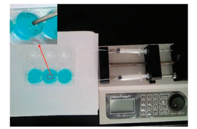 Six well cell culture plates were used as the cell culture rooms. The microfluidic injection device was used to control the flow of the drug.