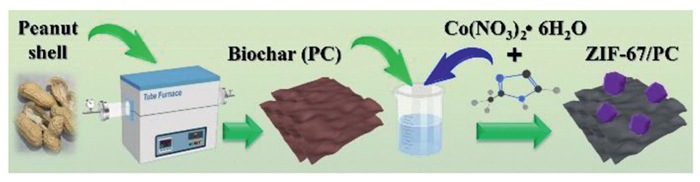 The obtained biochar (PC) derived from peanut shells was added to the precursor of the preparation of ZIF-67, and the composite material was prepared at room temperature (Fig. 2 and Fig. S1 in Supporting information).