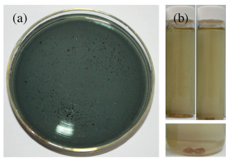 Then the AuNPs formed in DOM solution were stored in a dark environment at ambient temperature to investigate their further transformation. After 4.0 years, visible yellow Au granules can be observed in the blue-black AuNPs solution (Fig. 3a), demonstrating the further growth and fusion of AuNPs into bigger Au granules. After another 2.8 years, the blue-black solution turned to transparent and more Au granules can be observed (Fig. 3b). These Au granules were easy to settle and agglomerate into loosely large aggregates (Fig. 3b), which is favorable for their growth into Au grains. Accordingly, the solution pH further decreased from 4.5 (newly prepared AuNPs) to 4.2 during the 6.8 years storage.