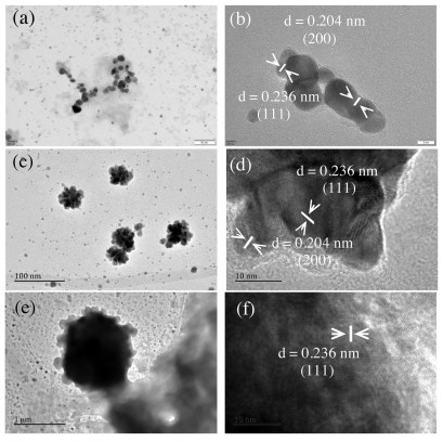 Similar to AuNPs formed in DOM solution, the XRD pattern of Au granules also showed a characteristic of face-centered cubic lattice of Au [39], with (111) as the dominate plane (Fig. S2). The intensity ratio between (200) and (111) diffraction peaks (0.23) further decreased, compared with that of fresh AuNPs formed in DOM solution (0.25), indicating the growth of Au atom along the (111) planes.