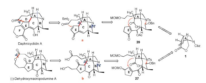 Our retrosynthesis is described in Scheme 1, ring D of daphnicyclidin A could be constructed by a SmI2-mediated radical Michael addition [10] from intermediate a, and the 11-membered macrolide ring of dehydroxymacropodumine A could be assembled by macrolactonization [11] from intermediate b. The ring B of those two alkaloids can be formed by the formation of lactam. Finally, Seven-membered ring C and C-5 quaternary carbon center can be constructed via a photocatalyzed decarboxylation radical conjugate addition from 20 and 27 respectively, which can be synthesized from 2, 3, 4-cis tri-substituted pyrrolidine 1.
