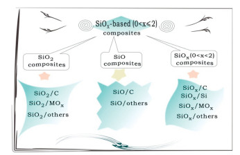 Figure 1. Conspectus of three major type composites: SiO2 composites, SiO composites and SiOx (0 < x < 2) composites.2. SiO2 composites