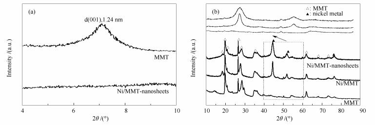 Figure 3 (a) shows the small-angle XRD patterns of Ni/MMT-nanosheets catalyst with 12.3% Ni loading.