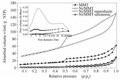 Figure 4 is the N2 adsorption-desorption isotherms of pristine MMT, Ni/MMT, Ni/MMT-ultrasonic and Ni/MMT-nanosheets.
