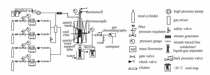 实验采用自行设计由天津先权公司加工制造的固定床反应装置进行燃烧反应性测试,装置示意图见图 1。