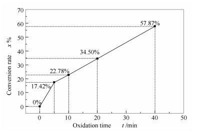 将200 mg胜利脱灰褐煤(SL+)置于固定床反应器,通入流量为30 mL/min的空气,加热到400 ℃,反应时间分别控制在0、5、10、20以及40 min,切换氮气保护冷却后得到反应条件不同的未反应残留物,分别命名为SL+-0、SL+-5、SL+-10、SL+-20和SL+-40。以干燥无灰基为基准计算其燃烧转化率[16],定义燃烧转化率公式: