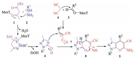 • A one-pot, four-component reaction of ethyl acetoacetate, hydrazine hydrate, aldehydes, and malononitrile was discussed using Lewis acid catalyst morpholine triflate (MorT) to afford a series of dihydropyrano[2, 3-c] pyrazoles, which were generally catalyzed by organic alkalis.Moderate to excellent yields, no chromatographic purification, and evasion of environmentally hazardous solvents in the reaction process make this protocol very useful for academia and industry.