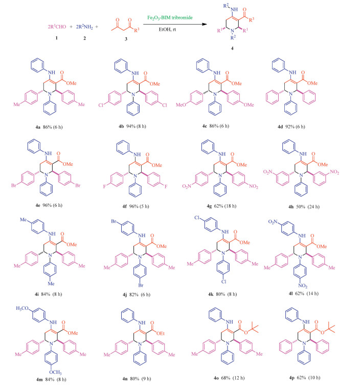 Shaterian H.R., Azizi K.. Acidic ionic liquids catalyzed one-pot, pseudo fivecomponent, and diastereoselective synthesis of highly functionalized piperidine derivatives, J[J]. Mol. Liq., 2013,180:187-191. doi: 10.1016/j.molliq.2013.01.020