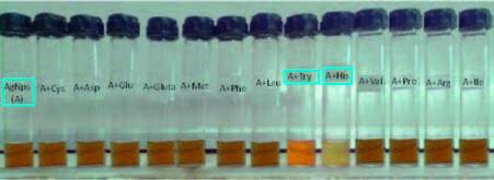 H.B. Li, Y.H. Bian. Selective colorimetric sensing of histidine in aqueous solutions using cysteine modified silver nanoparticles in the presence of Hg2+[J]. Nanotechnology, 2009,20145502. doi: 10.1088/0957-4484/20/14/145502