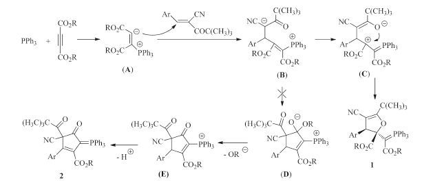 Y. Han, W.J. Qi, Y.J. Sheng, C.G. Yan. Synthesis of triphenylphosphanylidene cyclopent-2-enecaroboxylates with three-component reaction of triphenylphospine, hex-2-en-4-ynedioate, and β-nitrostyrene[J]. Tetrahedron Lett.,