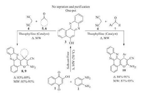 . Theophylline as a new and green catalyst for the one-pot synthesis of spiro[benzo[a]pyrano[2,3-c]phenazine] and benzo[a]pyrano[2,3-c]phenazine derivatives under solvent-free conditions[J]. Chinese Chemical Letters,