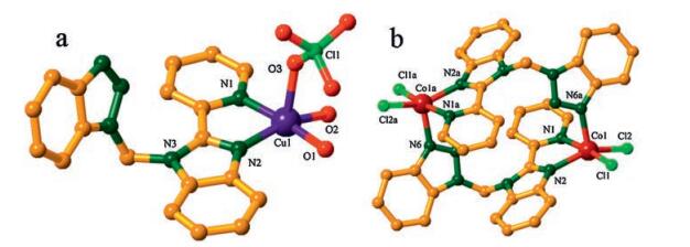 In this study, novel mono/di-nuclear Cu(p-2-bmb)(OH)(ClO4) (1) and Co2(p-2-bmb)2Cl4 (2) (p-2-bmb=1-((2-(pyridin-2-yl)-benzoimidazol-1-yl)methyl)-1H-benzotriazole) complexes with the nitrogen heterocyclic benzimidazole-based ligand were synthesized and characterized. The two complexes showed antiproliferative effects in various carcinoma cell lines, especially complex 1 in the SMMC7721 tumor cell line. Complex 1 was also able to pass through the cell membrane and enter the nucleus and mitochondrion. An analysis of in vitro chemical nuclease activity revealed that complex 1 partially intercalated to calf thymus DNA and exhibited strong unwinding activity against pBR322 superhelical plasmid DNA. The comet assay and flow cytometry analysis confirmed that 1 caused extensive DNA damage and arrested SMMC7721 tumor cells at G2/M phase of the cell cycle, leading to loss of mitochondrial membrane potential and apoptosis. These results suggest that these benzimidazole-based metal complexes could be potential anti-cancer agents.
