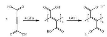 Pressure-induced polymerization of butyndioic acid and its Li+ salt