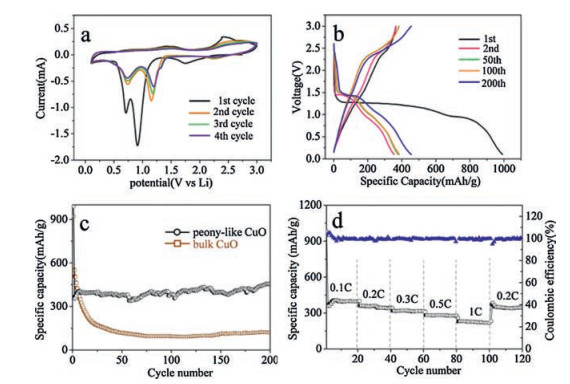 Hydrothermal synthesis of peony-like CuO micro/nanostructures for high-performance lithium-ion battery anodes