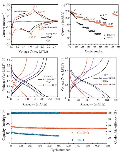 Binder-free carbon fiber/TiNb2O7 composite electrode as superior high-rate anode for lithium ions batteries