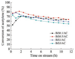 Active carbon supported S-promoted Bi catalysts for acetylene hydrochlorination reaction