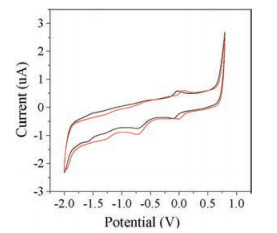 Cyclic voltammetry was used to investigate the effect of chlorination on the redox potential. We were observed three redox events for both corroles: one reversible oxidation and two irreversible reductions (Fig. 5). Generally, halogenation of the corrole at β-pyrrole position shifted the redox potential towards more positive potential [17, 18]. In case of 3 (H3TTPPC), the reversible oxidation took place at E1/2 = -0.05 V (vs. Ag/AgNO3), while for 4 (H3TTPPC-Cl) the reversible oxidation took place at E1/2 = 0.04 V (vs. Ag/AgNO3) with 90 mV shift in the oxidation potential (Table S4 in Supporting information).