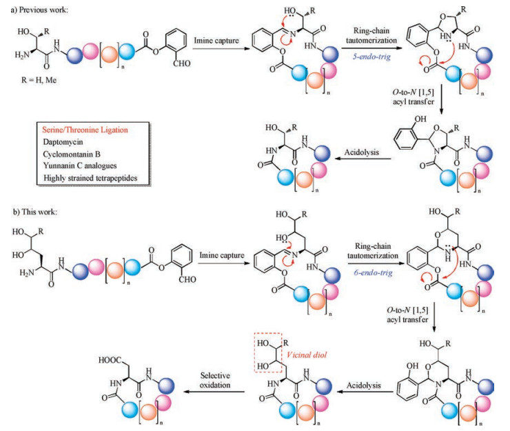 Development of aspartic acid ligation for peptide cyclization derived from serine/threonine ligation