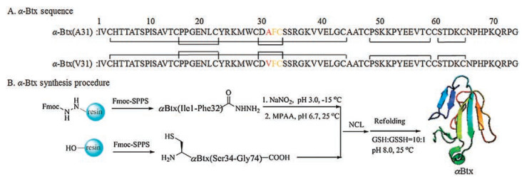 Total synthesis of snake toxin α-bungarotoxin and its analogues by hydrazide-based native chemical ligation