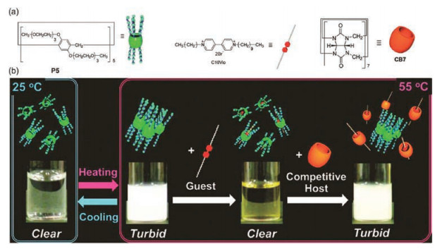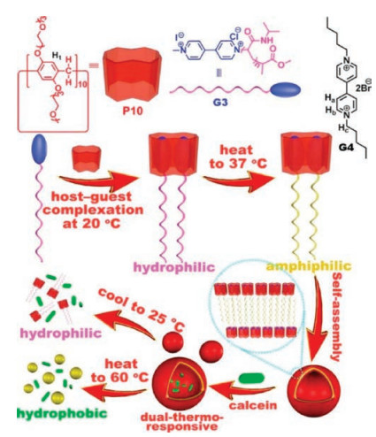 Dynamic materials fabricated from water soluble pillar[n]arenes bearing triethylene oxide groups