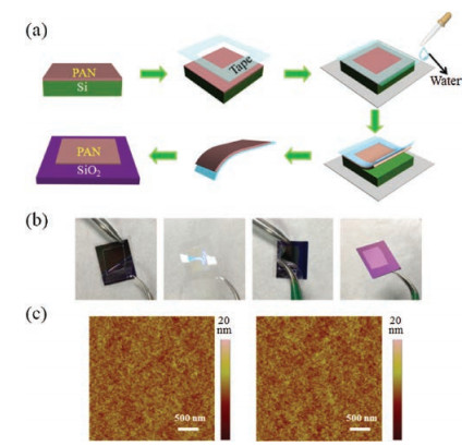 Fabrication of flexible thin organic transistors by trace water assisted transfer method