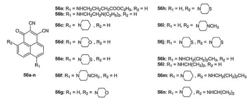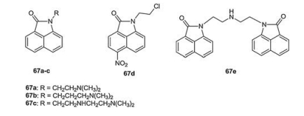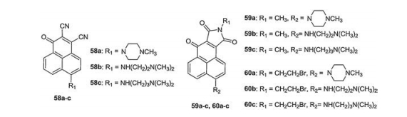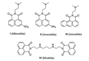 Our group also designed some naphthalimide analogues and discovered their antitumor activities, including naphthalene carboxamides, 1-oxo-1H-phenalene-2, 3-dicarbonitrile derivatives, naphthostyrils. Their antitumor activities were evaluated and a preliminary antitumor mechanism of action was studied.