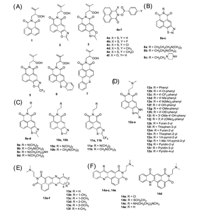 Various drug targets were found to be related with the antitumor activity of naphthalimide antitumor agents in the process of developing heterocyclic fused and 3-/4-substituted derivatives. Therefore, more N-imide substitutions besides N, N-dimethylaminoethyl were introduced, such as chiral aminos, amino acids, benzoic acid.