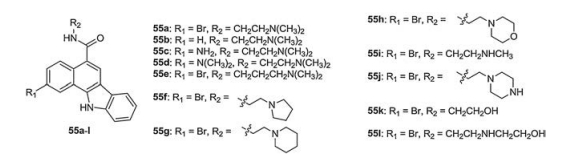 Apart from the fusing heterocycles to naphthalene nucleus as we summarized before, linkage of functional rings with a single covalent bond also drew more and more attention. Brana et al. designed and reported five "non-fused" arylnaphthalimides with good antitumor activity [49]. Our group also contributed to the synthesis of more appended arylnaphthalimides and suggested the application of "non-fused" strategy as an efficient measure to design antitumor naphthalimides.