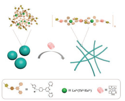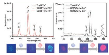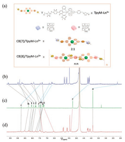 Then, CB[8] was further introduced to form a supramolecular assembly system with TpyM-Ln3+ through the association of methylimidazole cation with CB[8]cavity.