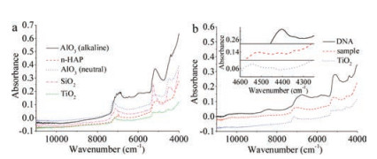 Titanium dioxide (TiO2) has been found to be an efficient material for absorbing the biological compounds such as DNAs [23, 24]. The affinity of the phosphate group to TiO2 surface improves the specificity for the absorption [25, 26]. Due to abundance of phosphate group in DNA, the interaction of DNA and TiO2 has been studied [27, 28]. On the other hand, TiO2 was found to have a high near-infrared (NIR) solar reflectance [29, 30]. Therefore, if TiO2 is employed as an adsorbent to selectively enrich the analytes such as DNAs, a spectrum with less spectral interference and low background may be obtained.